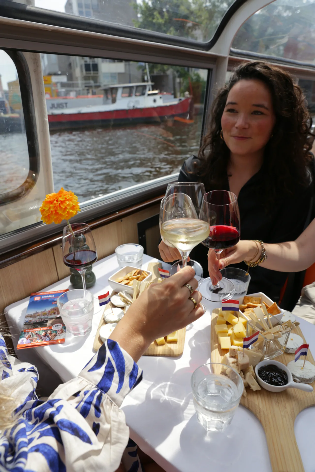 Stel jezelf voor terwijl je ontspannend langs de prachtige waterwegen van Haarlem vaart, genietend van het uitzicht op de stad terwijl je je tegoed doet aan de voortreffelijke combinatie van kaas en wijn. Dat is wat je kunt verwachten tijdens de Kaas- & Wijn Avondrondvaart met Smidtje Canal Cruises in Haarlem. Onze vriendelijke kapitein en gastvrije gastheer/vrouw staan klaar om jou en je gezelschap aan boord te verwelkomen en tot in de puntjes te verwennen. Of je nu geniet van een romantische avond met je geliefde of een gezellig uitje met vrienden, deze avond op het water belooft een onvergetelijke ervaring te worden die je nog jarenlang zult koesteren.